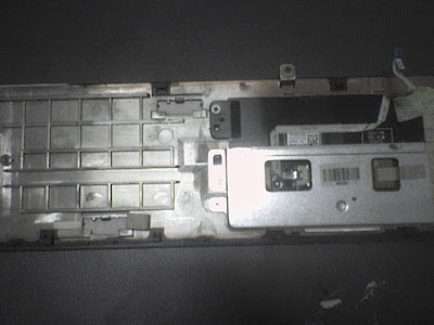 1.     Lepaskan batre laptop supaya tidak terjadi arus listrik pada laptop. Kemudian di bawah laptop ada 4 baut. Setelah baut selesai dibuka, dorong ke depan pada cassing tombol power.